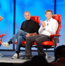 Carslbad (California) – L’uno in camicia rigata, compito, scarpe lucide che spiccano sotto i riflettori dell’evento D: All Things Digital ; l’altro maglia a collo alto, jeans, scarpe da ginnastica ingrigite. Microsoft ed Apple, Gates e Jobs , accomunati da sorrisi, nostalgia e stima reciproca. Insieme sul palco: nulla a che vedere con le schermaglie che i fanboy delle rispettive parti hanno sempre amato prefigurare , checché ne dica il falso Steve Jobs, nel suo “blog segreto”.