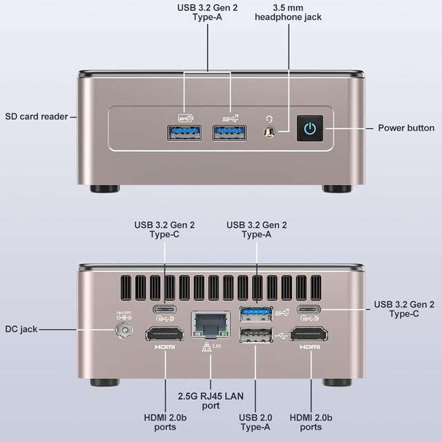 Integra il processore AMD Ryzen 7 5825U con GPU AMD Radeon Vega 8, affiancato da 16 GB di RAM DDR4 (espandibile fino a 64 GB) e da un’unità SSD PCIe NVMe da 512 GB (espandibile fino a 2 TB). A queste specifiche tecniche si aggiungono la connettività Wi-Fi 6 e Bluetooth 5.2, senza dimenticare lo slot Ethernet, due porte USB-C 3.2 Gen 2, tre USB-A 3.2 Gen 2, una USB-A 2.0 e il jack audio. Considerando la presenza delle due uscite video HDMI 2.0b è possibile collegare fino a quattro monitor con supporto alla risoluzione 8K. Altri dettagli nella scheda completa.