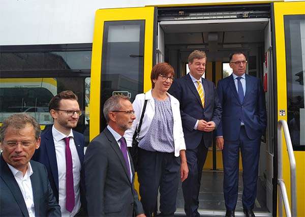Questi alcuni dei benefici legati all’impiego di una soluzione come quella proposta da Bombardier, ben illustrati dal filmato di presentazione in streaming qui sopra: dimensioni ridotte del 50% rispetto alla generazione precedente, consumo energetico abbattuto del 35%, peso contenuto del 20% e rumore generato in fase di trazione diminuito di 19 dB così da garantire il comfort dei passeggeri. Entro il prossimo anno è previsto un incremento nell’autonomia delle batterie fino a raggiungere i 100 Km percorribili con una ricarica (il che, come evidente, cambia radicalmente le prospettive del progetto). Il treno elettrico è stato messo a punto anche grazie a un fondo da 4 milioni di dollari finanziato dal governo tedesco, rappresentato da Enak Ferlemann (Segretario di Stato) e Kathrin Schneider (Ministro dei Trasporti Brandeburgo).
