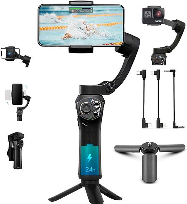 Il dispositivo è completo di tutto: peso di appena 439 grammi, rotazione possibile di 360 gradi, giunto cardanico a 3 assi di buona stabilità e capacità di tracciamento del volto per migliorare la resa durante le riprese. L’autonomia può arrivare a 24 ore di lavoro e grazie al caricamento wireless può fungere da caricatore dello smartphone durante i minuti di ripresa (garantendo peraltro piena autonomia di carica anche allo smartphone attivo nelle registrazioni).
