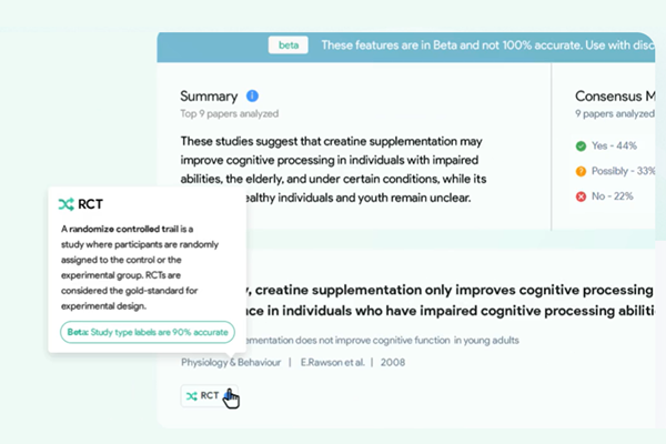 Infine, sono presenti funzionalità proprietarie appositamente create che sfruttano GPT4 e altri modelli di linguaggio per riepilogare i risultati. Consensus è uno strumento prezioso per i ricercatori che cercano di navigare nel vasto mondo della letteratura scientifica.