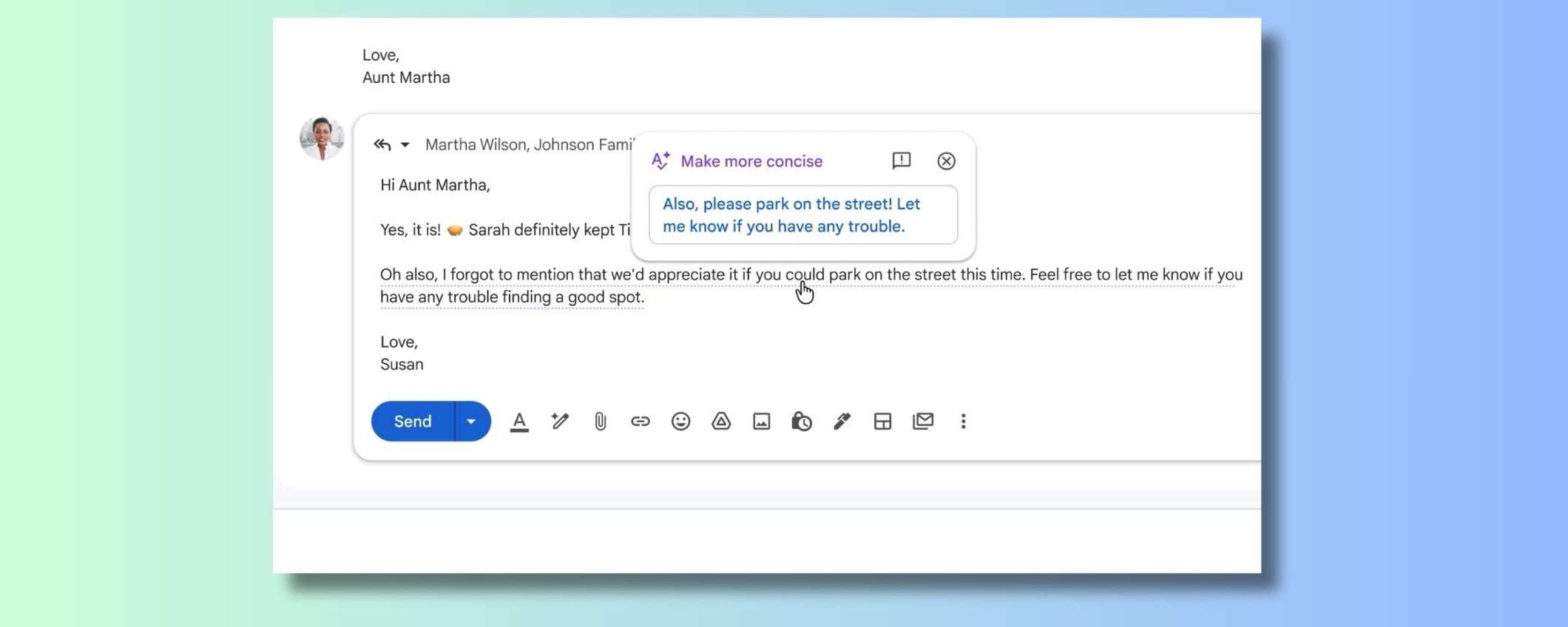 Big G ha anche annunciato che dal mese prossimo Help Me Write diventerà ancora più potente. L’integrazione con il contesto delle altre app Google permetterà all’assistente di attingere a informazioni da Calendario, Drive, Documenti. Per esempio, se si deve scrivere una mail su un progetto discusso in un documento condiviso, Help Me Write saprà già di cosa si tratta e potrà riferirsi a dettagli specifici senza dover specificare nulla.
