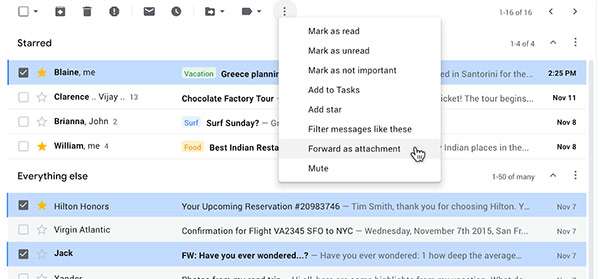 Novità in arrivo per Gmail: da qui in avanti la casella di posta elettronica di Mountain View permetterà agli utenti di inviare le email come allegati ai nuovi messaggi, senza costringere dunque a scaricarli preventivamente per poi inserirli tramite upload.