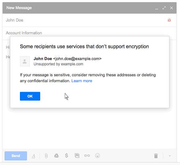 Gmail offre da tempo la cifratura tutti i messaggi che transitano tra l’utente e i server del proprio servizio di posta elettronica e tra i propri datacenter. Se è vero che numerosi fornitori di servizi email si sono adeguati agli standard di sicurezza, Google ha di recente stimato che circa il 40 per cento delle email ricevute dal miliardo di utenti Gmail , inviate con il supporto di altri fornitori di servizi, non transiti su connessioni sicure.