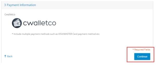 - Seleziona “CWALLETCO” in questo passaggio, quindi fai clic su “Continua”.