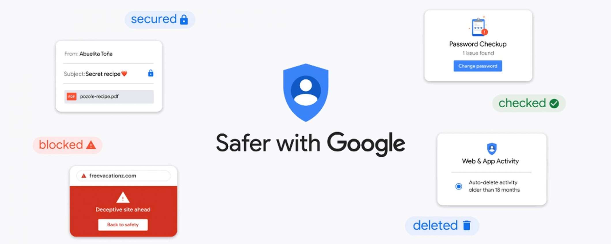 Le novità relative alla privacy sono quattro. La prima, denominata Quick Delete, consente di cancellare gli ultimi 15 minuti delle cronologia di ricerca con un semplice tocco o clic nel menu del Google Account. Locked Folder è invece una spazio riservato e protetto da password in Google Foto, dove è possibile salvare le immagini che non deve vedere nessuno.