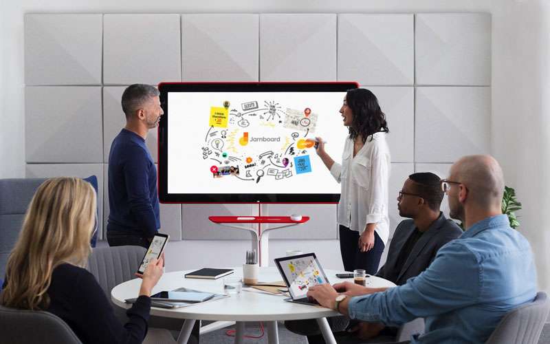 Jamboard è un display touchscreen da 55 pollici in risoluzione 4K. Si tratta inoltre del primo prodotto hardware di Google a fare uso della G Suite di applicazioni cloud-based, come Gmail , Google Drive , Google Docs ecc. In sostanza, grazie al supporto dell’OS Android, lo schermo permette non solo di utilizzare tutti gli strumenti della suite Mountain View , ma può farlo in maniera collaborativa , proprio sfruttando il fatto che siano gestiti a mezzo cloud.