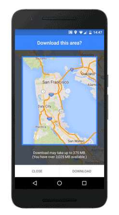 Da tempo si parlava delle funzionalità offline di Maps, utili magari quando si va all’estero o se ci si trova in una zona senza copertura di rete (una strada di campagna, un parcheggio sotterraneo): finora era possibile consultare solo un’area specifica della mappa offline, mentre la nuova funzione – presentata in anteprima a Google I/O e disponibile per il momento solo per Android – permette di scaricare l’intera mappa della zona di interesse con un peso minimo: la mappa di San Francisco, per esempio, peserà 375 MB.
