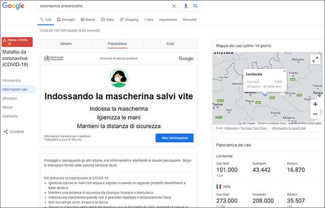 Metti la mascherina, te lo chiede Google