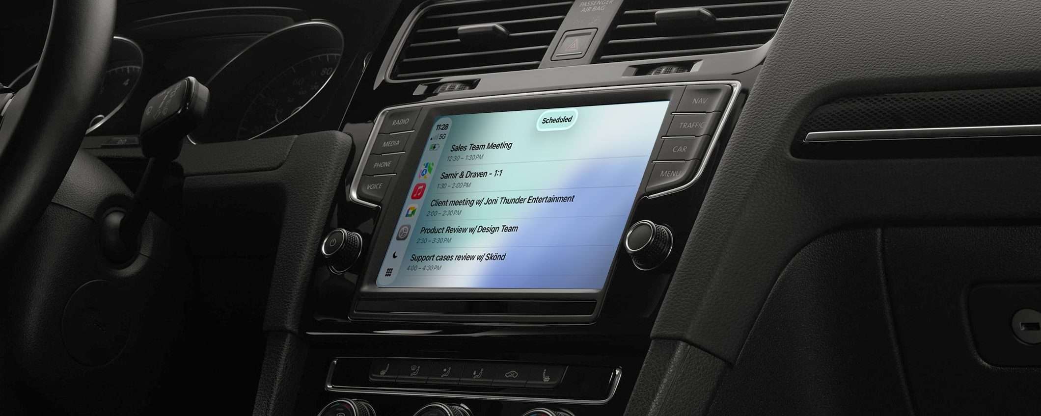 È una novità sviluppata con la priorità di garantire la sicurezza. Permette di passare dal dispositivo iOS alla dashboard del veicolo in un istante, senza soluzione di continuità, così da non interrompere la partecipazione all’incontro. L’app integra inoltre il supporto alla visualizzazione degli appuntamenti in programma, ed è ovviamente pensata per la sola modalità audio. Il motivo è presto detto: per evitare distrazioni mentre si è alla guida.