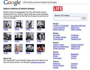 Sono 3 milioni le immagini ospitate e messe a disposizione da Google attingendo al vastissimo archivio del noto magazine Life. Le foto sono state digitalizzate in alta qualità e sono accessibili al pubblico nel comune motore di ricerca di immagini del search engine.