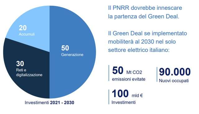 Il PNRR, in particolare, prevede per l’Italia 210 miliardi di investimenti, dei quali “196,5 miliardi dal Recovery and Resiliency Facility (RRF), 13,5 dal REACT-EU e 1 dagli altri strumenti finanziari“. 70 miliardi, invece, sono destinati alla transizione energetica. Alla luce del prossimo insediamento di Draghi a Palazzo Chigi, ove tra le priorità ci sarà la rivalutazione dei piani esecutivi legati ai fondi Next Generation EU, Elettricità Futura chiede che venga posta maggiore attenzione proprio alla transizione energetica, alla luce di una necessaria coerenza con l’attuale obiettivo del Green Deal al 2030. Insomma: se non si investe ora facendo leva sui capitali disponibili, non è pensabile il raggiungimento di quegli obiettivi che il Paese ha già controfirmato.