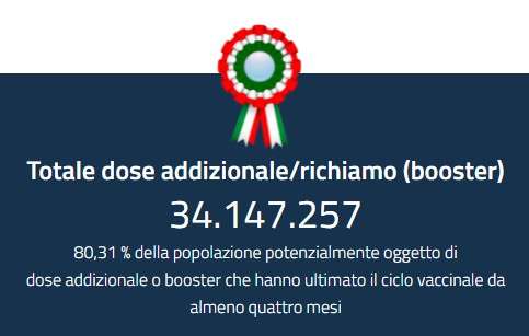 - italiani con 3 dosi: 34,1 milioni (80,31% della popolazione over 12)