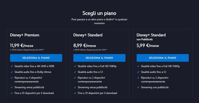 Per un’esperienza completa del servizio c’è il piano Premium, che va a migliorare la qualità video (fino a 4K UHD e HDR), audio (fino a Dolby Atmos) e il numero di dispositivi su cui guardare i contenuti in catalogo (passano da 2 a 4). Il costo è di 11,99 euro al mese o 119,90 euro all’anno.