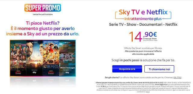 Quale migliore occasione dunque di attivare Intrattenimento Plus al prezzo stracciato di 14,90 euro al mese? Oltre a tutto il catalogo di Netflix, hai accesso ai migliori show di Sky, alle produzioni di Sky Original e alle grandi serie TV internazionali.