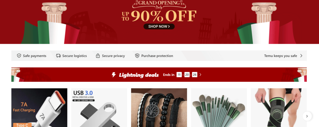 Dopo aver installato l’App o raggiunto il sito web di Temu, nella sua pagina iniziale si può osservare come la piattaforma è ricca di prodotti e categoria. La piattaforma anche se con un catalogo vasto, risulta intuitivo e semplice da utilizzare. Per scegliere i prodotti da acquistare è possibile navigare nelle categorie già predisposte, oppure scrivere la parola chiave nella barra di ricerca. I prodotti presenti sono di ogni tipo dagli accessori per la cura personale o per la casa, sino ai giochi e l’elettronica. A questo punto si possono visionare le categorie e i prodotti, ma per procedere con l’inserimento nel carrello degli articoli e le conseguenziali procedure di acquisto è necessario un account.