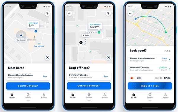 Gli utenti selezionati potranno chiamare uno dei veicoli a disposizione 24 ore su 24, 7 giorni su 7, attraverso un’applicazione mobile, ottenendo in pochi secondi una stima della spesa da affrontare per giungere a destinazione. Come si può vedere dagli screenshot di seguito, se necessario su una mappa viene mostrato il punto da raggiungere a piedi per salire sull’auto.
