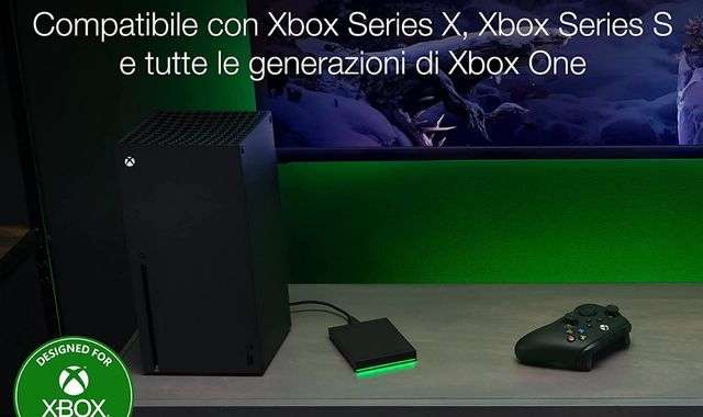 È per questo che l’occasione su questo hard disk esterno Seagate capita a fagiolo: hai subito 2 TB di spazio aggiuntivo da usare come vuoi per i tuoi giochi Xbox, contando inoltre su un design audace e raffinato che combacia con quello che è lo stile tipico delle console Microsoft.
