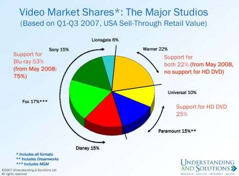 Per il momento sia Paramount che Universal hanno smentito le voci che le vorrebbero in procinto di seguire le orme di Warner ed abbracciare Blu-ray. Anche così, tuttavia, la quota di mercato home video attualmente posseduta da HD DVD in USA è solo un terzo rispetto a quella detenuta dal formato concorrente (v. figura sotto).