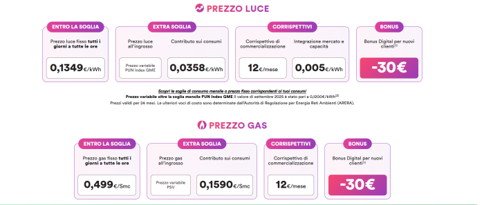 - Bonus: 30€ di sconto di Bonus Digital per i nuovi clienti.