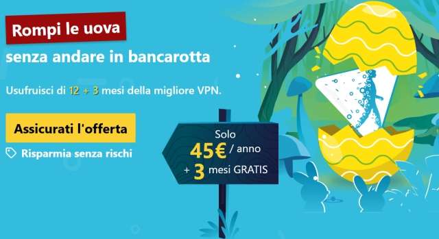Nuova interessante offerta “pasquale” per la VPN di Hide.me. Gli utenti che cercano una soluzione veloce ed economica possono approfittare dello sconto sull’abbonamento annuale che include tre mesi gratis. Il prezzo da pagare ogni 12 mesi è 45 euro. Non è nota la scadenza della promozione, quindi è meglio non perdere tempo, come consiglia l’azienda fondata nel 2012.