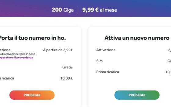 Per chi preferisce attivare un nuovo numero, ho.Mobile propone lo stesso piano a condizioni davvero vantaggiose. Il costo di attivazione è di soli 2,99 euro, mentre la SIM è completamente gratuita. Anche in questo caso, è prevista una ricarica iniziale di 10,00 euro, che ti permetterà di coprire il primo mese di servizio.