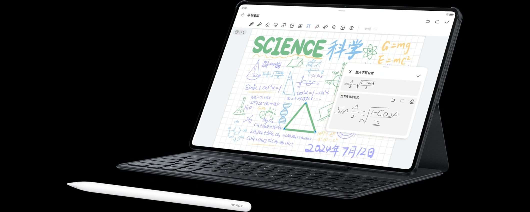 Il tablet Honor MagicPad 2 può essere utilizzato al posto di un notebook (con la tastiera staccabile), ad esempio durante le lezioni scolastiche. Come si può vedere nel seguente video, AI Formula Recognition permette di convertire le formule matematiche scritte a mano con la stilo in testo digitale.