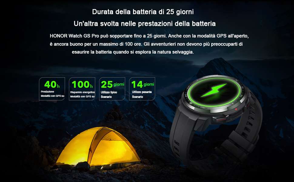 Selvaggio e robusto: Honor Watch GS Pro è un dispositivo indossabile che non teme le imprese più estreme. Con un corpo realizzato in precisione meccanica, è in grado di resistere anche agli ambienti più difficili. Inoltre, ti aiuta ad avere una visione completa della tua salute, grazie a funzioni come il monitoraggio della frequenza cardiaca, del sonno notturno e il monitor Spo2 per le misurazioni del livello di ossigeno del sangue.