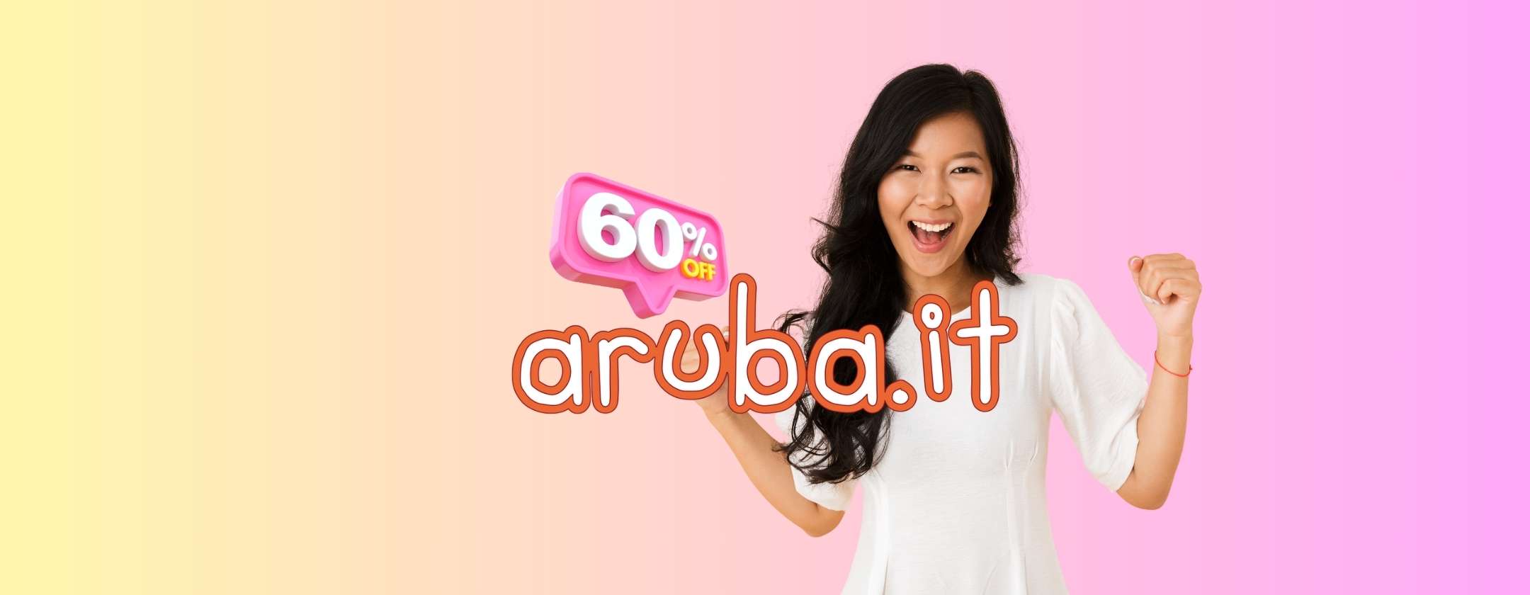 Per aderire alla Promo Flash Aruba, devi inserire il codice FEBBRAIO60 al momento dell’acquisto. Immediatamente, il prezzo di tutti i servizi di hosting e domini scenderà del 60%. Ovviamente, hai tempo fino al 21 febbraio per farlo. La Promo include i seguenti servizi: