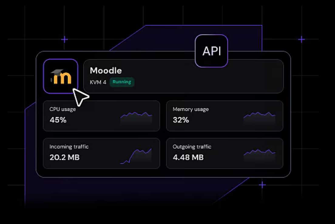 Hostinger propone una soluzione di hosting progettata appositamente per Moodle. L’infrastruttura si basa su processori AMD EPYC di ultima generazione, storage NVMe ad alta velocità e data center distribuiti a livello globale. Sono inclusi backup settimanali gratuiti, gestione avanzata del firewall, API pubblica e un assistente AI basato su MCP per facilitare le operazioni quotidiane, oltre a un dominio gratuito valido per il primo anno. I server con connettività in fibra e rete fino a 1 Gbps assicurano continuità e fluidità anche durante sessioni formative intense, mentre sistemi di sicurezza come protezione DDoS e scansione automatica anti-malware aiutano a proteggere i contenuti e gli utenti da possibili minacce online.