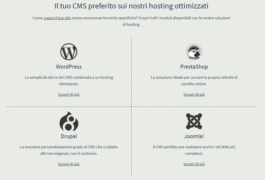 Tecnologie supportate dai piani hosting