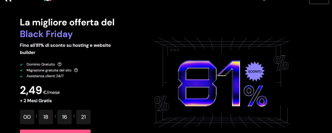 Approfitta dello sconto in occasione del Black Friday che arriva fino all’81% e della garanzia di rimborso di 30 giorni. In questo modo puoi sfruttare i suoi servizi pagando soltanto 2,49 euro al mese, compresi 2 mesi di utilizzo gratuito. Visita la pagina web cliccando sul link qui sotto.