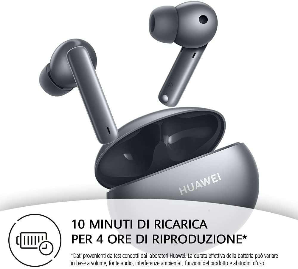 Le HUAWEI FreeBuds 4i si trovanoin offerta su Amazon a soli54,90€, il minimo storico per le cuffiette in-ear con cancellazione del rumore, per un risparmio di oltre 34 euro rispetto al prezzo solito.