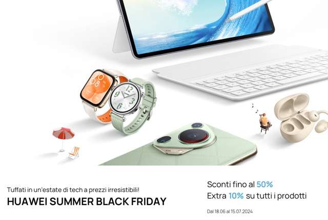 Il catalogo in offerta è estremamente ampio, con una miriade di prodotti per ogni fascia di prezzo. L’occasione è unica perché, nonostante alcuni prodotti fossero già in offerta nelle ultime settimane, questa iniziativa spinge ancore più in basso i costi pur a fronte di una produzione di qualità riconosciuta. Smartwatch per i tuoi allenamenti, smartphone con fotocamera insuperabile per i tuoi migliori ricordi, laptop ultraleggeri per portarti appresso i tuoi file e la tua quotidianità: Huawei Summer Black Friday è una grande occasione per chiunque stia aggiornando la propria dotazione digitale, dunque non resta che approfittare di sconti e coupon prima che tutto scada e l’estate faccia tramontare la stagione delle opportunità.