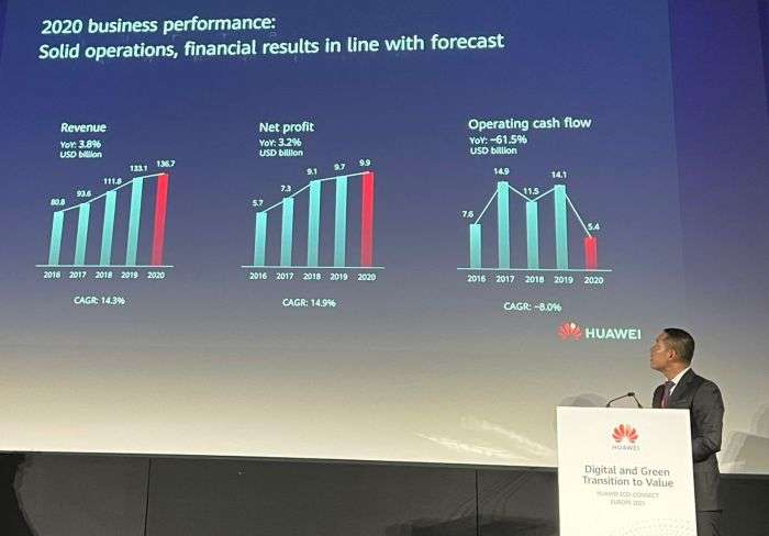 Wilson Wang, CEO di Huawei Italia, ha aperto l’appuntamento romano dell’evento continentale Eco-Connect Europe 2021, evento di punta per le smart technologies, le applicazioni nelle industrie e nella quotidianità e le tecnologie per l’impiego di fonti di energia rinnovabile. L’accento è andato subito ai conti del gruppo su scala globale in termini di fatturato e profitti, senza badare alle spese sul cash flow. Delle tre divisioni del colosso cinese quella Enterprise, protagonista dell’appuntamento italiano, ha assicurato maggiori soddisfazioni, con una crescita del 23% rispetto allo scorso anno a 15.4 miliardi di fatturato (e nonostante il bando statunitense perfino la Consumer è cresciuta del 3,3%, da 72 a 74 miliardi di dollari). Stabile, invece, la divisione Carrier.