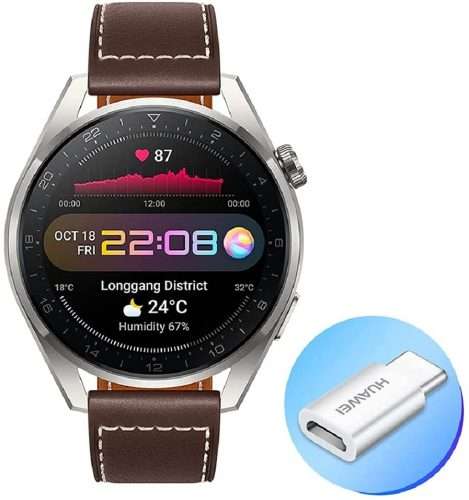 - Segue poi Huawei Watch 3 Pro il quale, a prima vista, potrebbe apparire come un più classico orologio da polso. In realtà dietro al suo cinturino in vera pelle e una cassa rotonda si cela un cuore altamente tech. Su Amazon lo acquisti con appena 399,00€ grazie al ribasso del 20%.