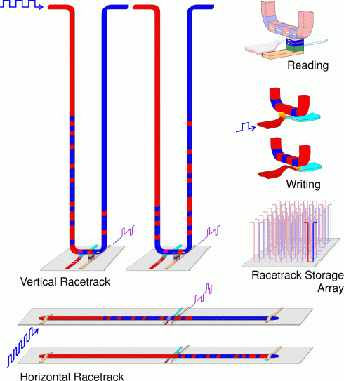 Di seguito un’immagine che illustra i principi di funzionamento della memoria racetrack.