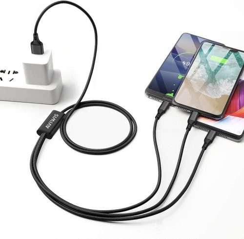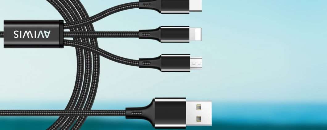 Bene, la soluzione più slim ed efficace possibile oggi te la fornisco io. Questo cavetto è unico, ma ha tre uscite: USB C, microUSB e Lightning. Scegli, di volta in volta, cosa fare: colleghi un solo dispositivo, ne colleghi due oppure ne colleghi tre contemporaneamente. Una genialata, no?