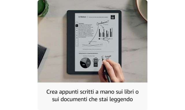 Grazie al rivoluzionario schermo da 10,2 pollici a 300 ppi, con illuminazione frontale e privo di riflessi, potrai leggere e scrivere proprio come su carta stampata. Prendi appunti a mano mentre leggi e crea annotazioni su milioni di titoli disponibili nel Kindle Store.
