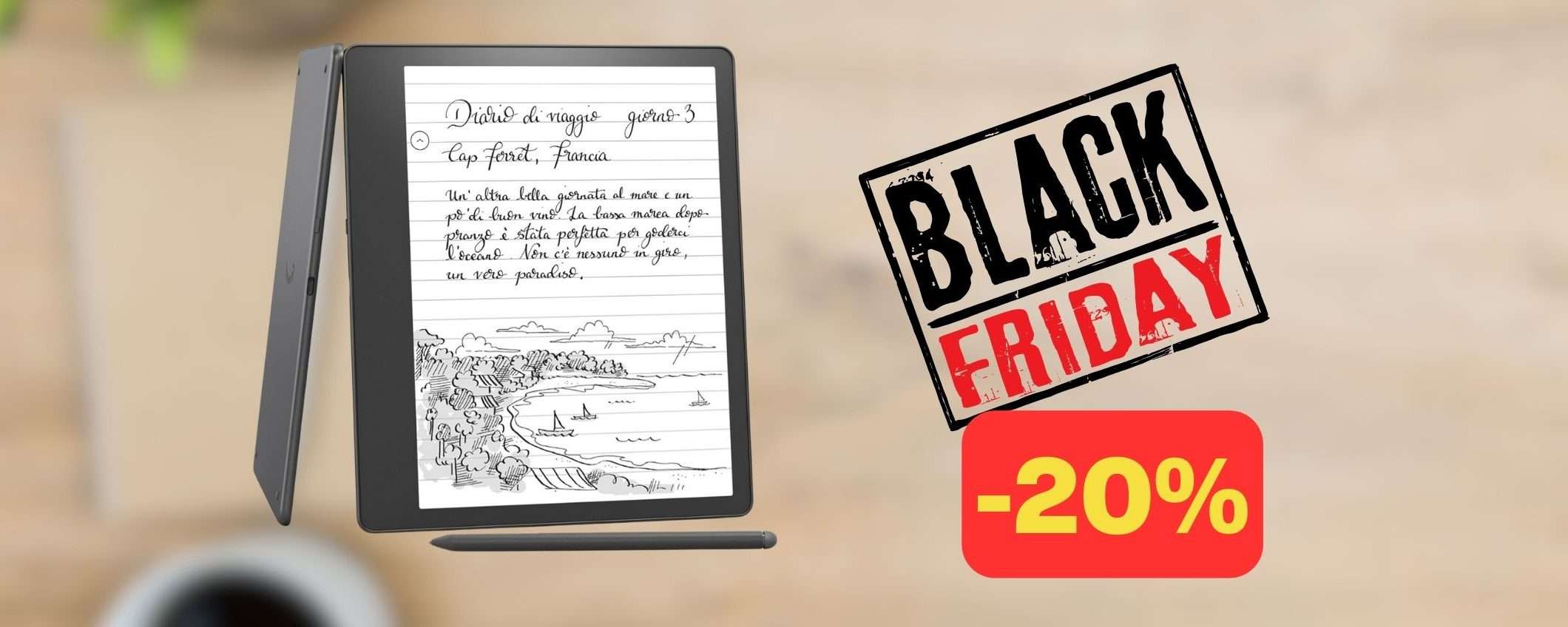 Il rivoluzionario Kindle Scribe da 32GB entra di diritto tra le offerte del Black Friday di Amazon: il prodigioso e-reader che ti permette anche di prendere appunti e scrivere come se fosse un vero e proprio taccuino digitale può essere tuo a 334,99 euro invece di 419,99al suo prezzo più basso di sempre.