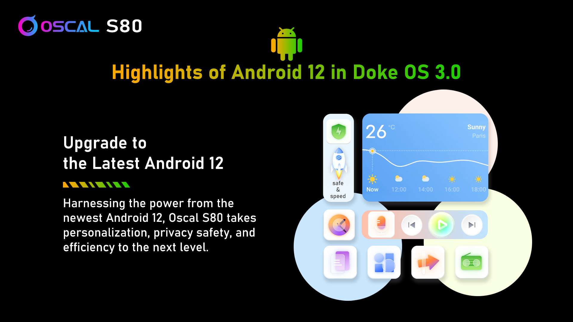 Per quanto concerne il sistema operativo troviamo Doke OS 3.0 basato su Android 12. Oscal S80 offre alcuni dei modi più recenti per semplificarti la vita con finestre mobili intelligenti come Smart Sidebar, Minus One Screen e Control Panel. Ha anche reso la personalizzazione dell’interfaccia utente molto più semplice con vari sfondi e temi. Per aiutarti a precaricare velocemente le tue app, è equipaggiato con RAM Fast per migliorare la velocità media di avvio delle app del 7%.