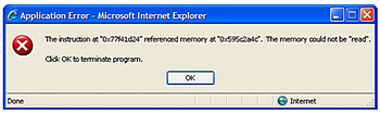 Un popup si presenta a video: “L’istruzione all’indirizzo 0x77f41d24 ha tentato di accedere alla memoria all’indirizzo 0x595c2a4c. La memoria non poteva essere letta. Cliccare OK per chiudere il programma”. Un messaggio che esiste davvero, come sanno perfettamente i lettori di Punto Informatico , un messaggio presentato alle cavie che si sono sottoposte al test nordamericano. In quel caso il puntatore del mouse, spostato sopra l'”OK”, si è trasformato in manina , non è rimasto freccia , si è quindi presentato con un aspetto tipico del controllo di un browser.
