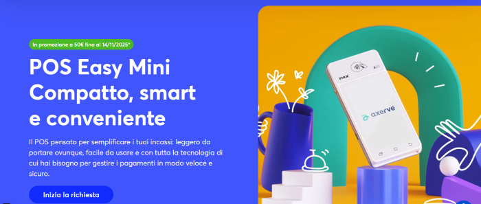Sei titolare di un’attività e hai bisogno di un POS portatile e senza canone mensile? La promozione di Axerve sul suo POS Easy Mini potrebbe essere ciò che fa al caso tuo.