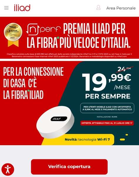 Per accedere a questa offerta, Iliad richiede un contributo iniziale di 39,99 euro per l’attivazione della Fibra. Affrettatevi, vecchi e nuovi clienti, questa promozione è valida fino alle 17 del 31 Luglio 2024. Non perdete l’occasione di entrare nel futuro della connettività con Iliadbox Wi-Fi 7.
