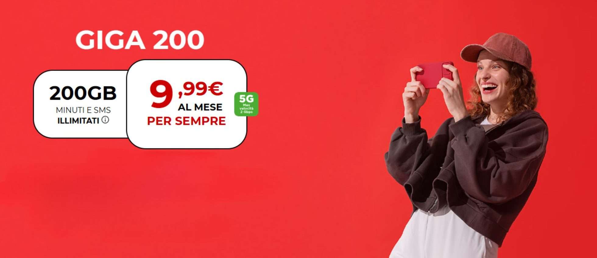 Con l’offerta Iliad Giga 200 puoi avere un’offerta a un prezzo decisamente conveniente senza rinunciare alla qualità e alla quantità della connessione. Il pacchetto a 9,99 euro al mese include 200 giga di navigazione anche in 5G, minuti e SMS illimitati e con la promessa di una tariffa valida per sempre, quindi non soggetta a rimodulazione a differenza di quanto può accadere con altri operatori.