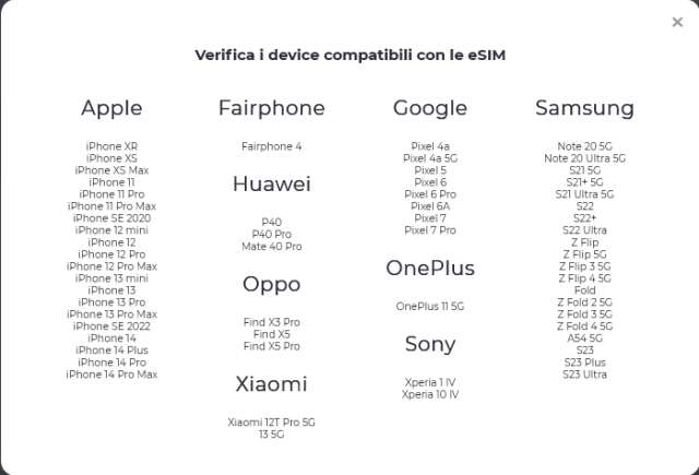 I vantaggi della eSIM rispetto alla SIM fisica sono molteplici. Non è necessario inserirla ed estrarla dallo smartphone, non può essere persa o danneggiata e può essere trasferita facilmente da un dispositivo all’altro (basta disinstallarla e riutilizzare il codice QR). Questi sono i dispositivi compatibili con la eSIM di Iliad.