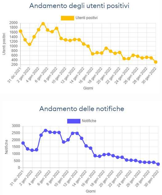 Il trend al ribasso è iniziato con il raggiungimento del picco dei contagi, ma la causa di questi ritmi blandi è tutta da ricercare nel basso numero di positività segnalate. Il funzionamento dell’app è rimasto costante: i falsi positivi sono probabilmente ridotti in virtù del basso rapporto tra notifiche e positività, ma l’assenza di dati in entrata ha reso ormai l’app completamente sterile dal punto di vista degli obiettivi che si prefiggeva – obiettivi che, per i motivi ormai noti, non sono stati raggiunti per quanto si era auspicato. Sono 184 mila circa le notifiche inviate ad oggi, a fronte di un totale di appena 75 mila positività segnalate al sistema (numero totalmente insignificante rispetto al totale delle positività registrate in Italia).