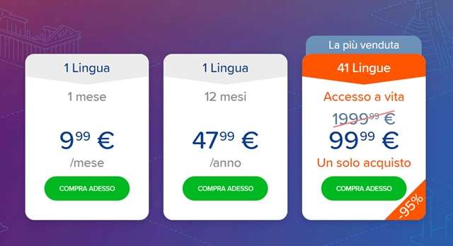 Approfitta ora della promozione esclusiva di Mondly per ottenere l’accesso a vita ai corsi con cui imparerai fino a 41 lingue straniere con un solo acquisto di 99 euro. L’offerta è a tempo limitato, scadrà nelle prossime ore: cogli al volo l’opportunità di oggi.