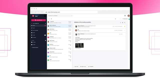 Infomaniak Mail è un programma di posta sicuro con cui ogni utente è in grado di gestire e-mail, contatti e calendari da computer o smartphone. Ad oggi Infomaniak conta più di un milione di indirizzi e-mail professionali.