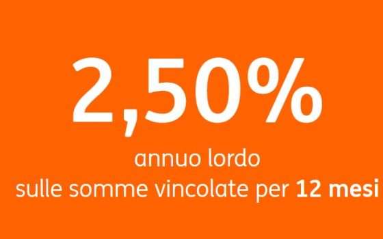 ING Direct offre il 2,50% lordo per 12 mesi. Per accedere al conto deposito, è necessario aprire il Conto Corrente Arancio in questa pagina entro il 31/12 e attivarlo entro il 17/01. Il conto corrente è a canone zero 100% digitale.